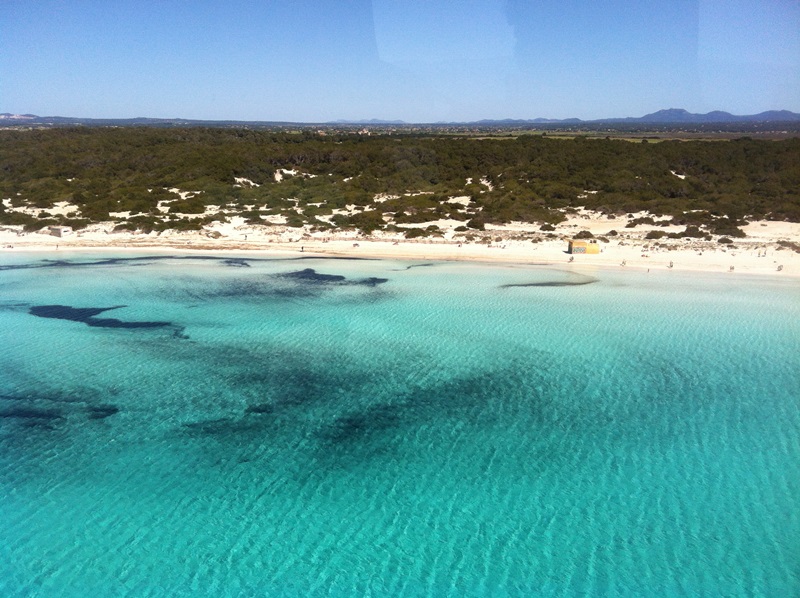 Vom Helikopter aus sieht man erst wie schön der Naturstrand von Es Trenc in seiner ganzen Schönheit überhaupt ist. Keine Hotels weit und breit. Das seichte Wasser und das unendliche türkis und blau vom Meer scheint unendlich zu sein.